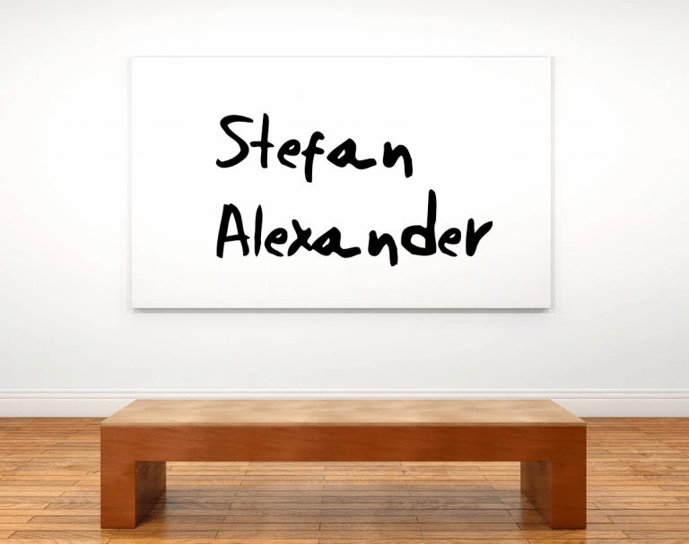 Diese Grundentscheidung für das weitere Schaffen Stefan Alexanders, welche fortan Authentizität grundsätzlich infrage stellte, wurde dann beim Zweitstudium in Frankfurt auf ein finales philosophisches Fundament gestellt. „Es gibt kein richtiges Leben im falschen“, diesen berühmten Satz aus den „Minima Moralia“, stellte Alexander als entschiedener studentischer Konterpart Adornos dialektisch vom Kopf auf die Füße. In der Auseinandersetzung mit Adorno, der sich ja den Sinn für richtig und falsch nicht nehmen lassen wollte, was zum von Alexander begrüßten Busenattentat und dem Abbruch der Vorlesungen des bald darauf Verstorbenen führte, stellte der Künstler das Falsche als das kunsttheoretisch Wahre, das Gefälschte als das von menschlicher Eitelkeit befreite ontologisch Echte in den Mittelpunkt seiner Arbeit.