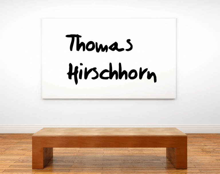 Bereits seit Mitte der 1990er Jahre erfährt Thomas Hirschhorn internationale Anerkennung. Zahlreiche Auszeichnungen begleiten sein Schaffen, darunter der Preis für junge Schweizer Kunst 1999, der Joseph Beuys Preis 2004 und der Meret Oppenheim Preis 2018. Seine Werke finden sich in den renommiertesten Galerien und Museen auf der ganzen Welt, etwa der Kunsthalle Mannheim, dem Museum of Modern Art, MoMA in New York, der Tate Gallery in London oder dem Walker Art Center in Minneapolis. Damit ist Hirschhorn einer der aktivsten zeitgenössischen Künstler, die sowohl die politische Meinungsbildung des Einzelnen wie der Gesellschaft, als auch das Verständnis von Kunst immer neu herausfordern.